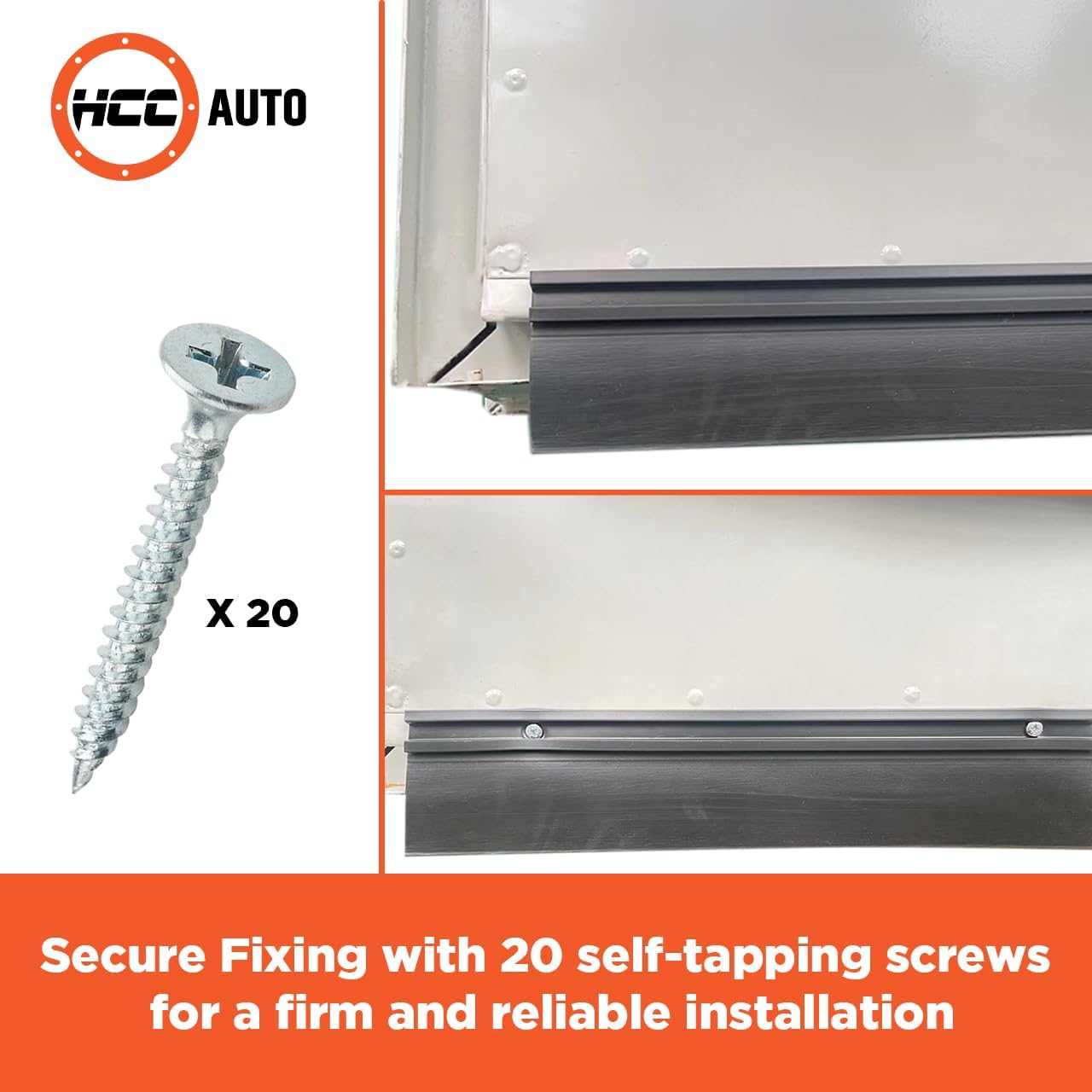LAP SEALANT AND SCREWS INCLUDED: The lap sealant included in this package is white and creates a secure secondary seal on both the rubber and vehicle surface. It adheres firmly to aluminum and other metal surfaces and is compatible with EPDM and TPE sheeting. Additionally, 20 self-tapping screws are provided to further secure the rubbers to the vehicle surface.